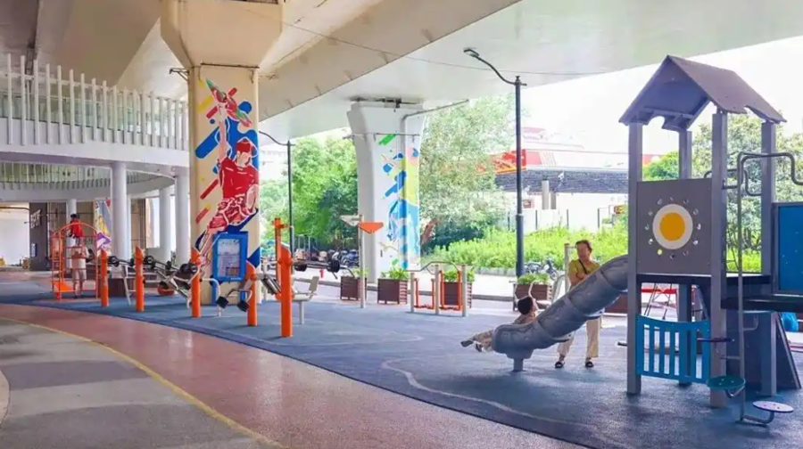 在沉睡空间中,桥下空间具有打造运动新地标的巨大潜力。目前,杨浦、长宁、浦东、静安、虹口、嘉定等区都已有尝试,其中不少也取得了不错的效果。2022年,徐汇区的内环漕溪北路立交桥下空间改造为上海首座儿童友好型口袋公园“乐汇小游园”后,内设的乒乓球台和篮球场深受欢迎,陈震年注意到,每逢晴天路过时,总能看到有市民在运动健身。这让他想到,还有许多桥下空间也可以因地制宜进行改造。