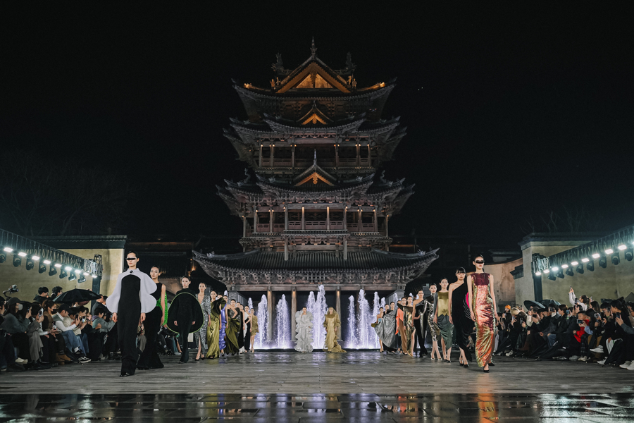 PIERRE CARDIN(皮尔·卡丹)巴黎家眷经典馆藏大秀本日,赶巧下着濛濛细雨,配着古镇的成就和木窗,映衬出一副东方古典好意思的田地。有前锋挑剔员神往:“往常以为顶级前锋必须去巴黎朝圣。如今在一个中国古镇,就能触摸到天下高定的灵魂,况且多了东方的诗意。”