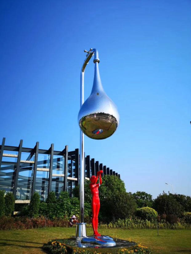 16.艺术灌溉:巨型水滴雕塑《仰望星空》屹立园中,如雨露滋养花木,也似艺术洗礼。