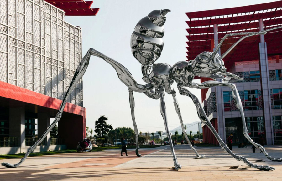 2.一蚂当先:高达13米的《蚂蚁·奔》雕塑,以魔幻造型引人注目,象征着微小生命蕴含的巨大能量。