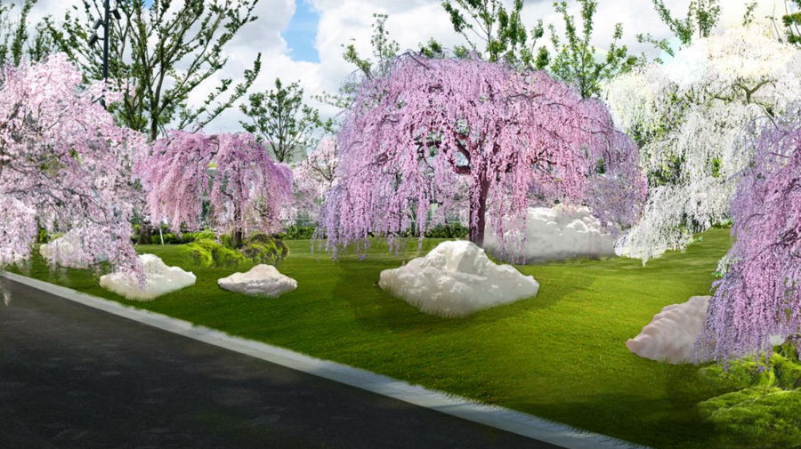 其他珍品轮番登场。3月中至3月底,100余株大型垂枝樱形成粉白花海。4月底至5月初,迎来绚丽的 “彩虹风暴”人文园林自主培育的德国鸢尾新品种大赏。2株树龄逾千年的油橄榄,将作为“活着的古董”与当代雕塑并置。