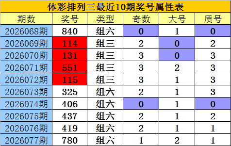 老郑体彩成列三第2026078期号码推选: