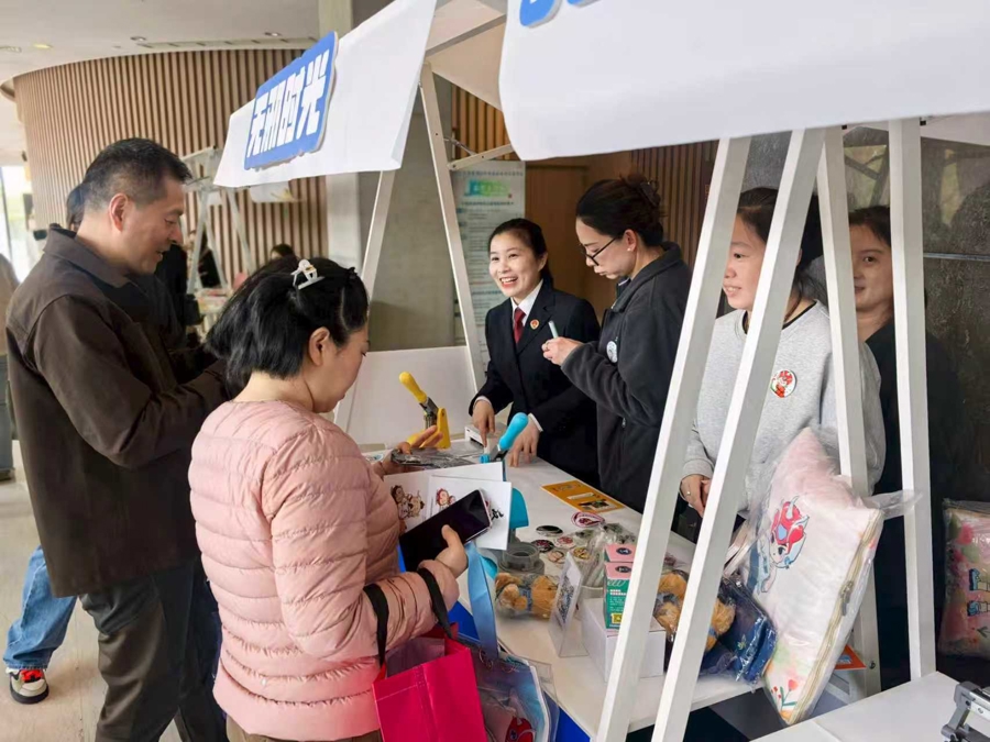 与此同期,一楼大厅的反邪教宣传互动区歧视利弊。浦东新区稽查院干警为学生代表及群众披发反邪教宣传手册,并提供法律打算干事。现场还诞生了非遗手工体验、DIY文创制作、反邪教常识问答等互动表率,让读者在或者互动中认清邪教危害,进步看守意志。