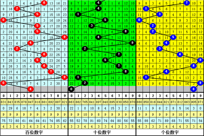 个位上期为:热号9,最近10期该位以热号、温号为主,冷号出现相对较少,目前该位有5个热号:1、4、6、8、9,本期看好该位热号出现,关注号码8。