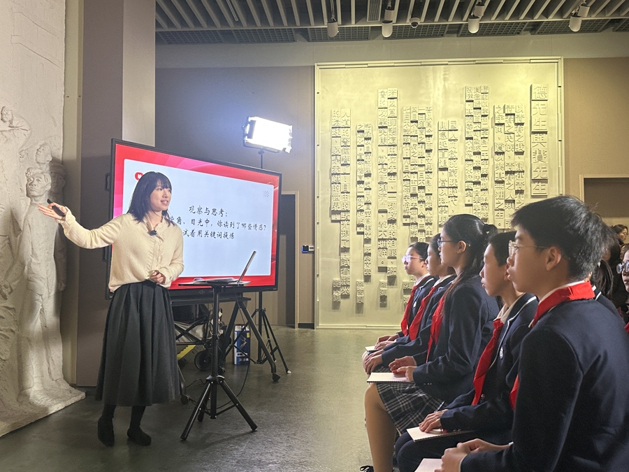 “走进场馆上课,同学们的反馈超出我的猜测。” 历史教师胡嶷飏齰舌。备课时,她第一眼就被巨幅油画《星火》所颤动,决定用这幅画齐集历史课的干线,聚焦中国共产党出身的布景与意旨伸开造就。她为每个小组披发了平板电脑,请同学们以小组为单元拍下史料,寻找中国共产党出身给中国创新带来的新面庞。在答题板上,她预留了6个空格,铁心同学们给出的谜底更多。“传统课堂里,是由咱们安分提供材料;在场馆中学习,同学们要我方征集史料并进行辨析,这个经由中,体现了初中历史造就中史料实证的修养。” 胡嶷飏说。